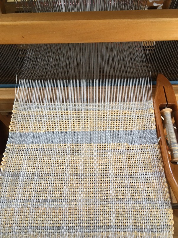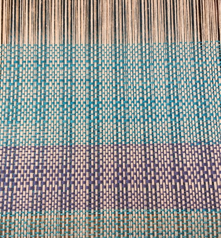 I began on a Union 36 rug loom and now weave on a 8-harness 22 inch Harrisville floor loom. This has kind of forced me to learn the double weave process in order to weave wider pieces on this loom. Double weave has also opened new doors to other techniques and pattern design for new projects.