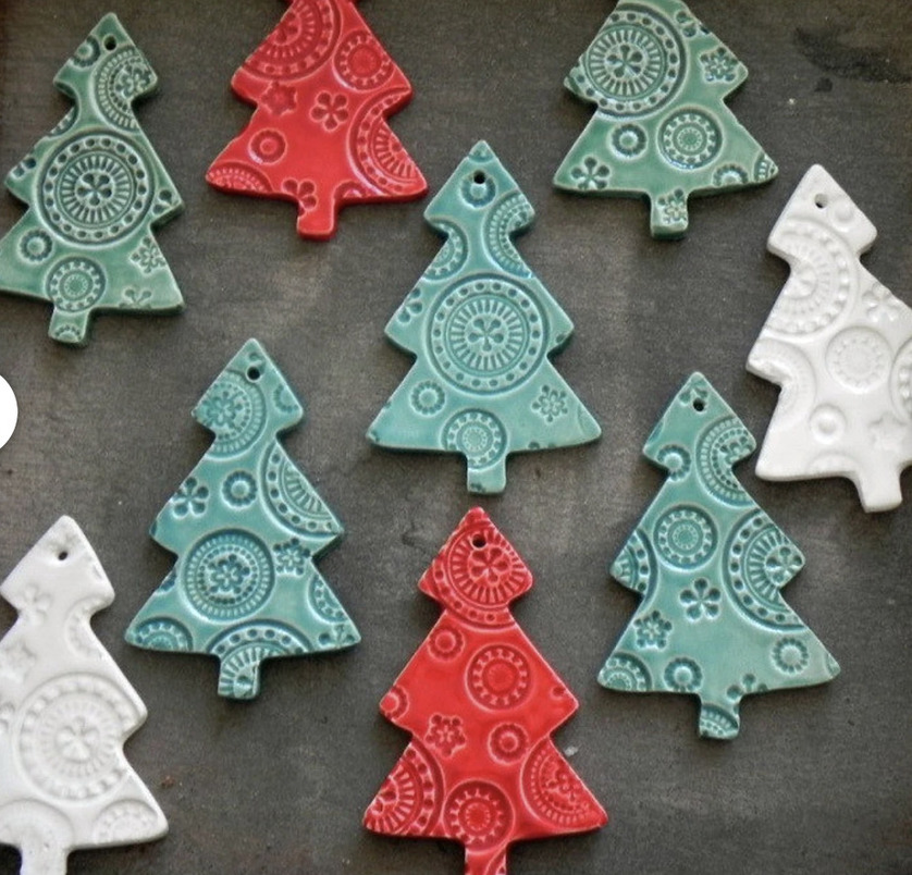 A one-day ceramics workshop for kids (or adults!). This workshop would use hand building techniques including slabs to create decorative ornaments. Kids will use cookie cutters and safe cutting tools to make the shape of the ornaments. They will then be decorated and textured. The next step will be glazing. Students should be able to make several ornaments. The ornaments will be fired and available for pick up within a month.